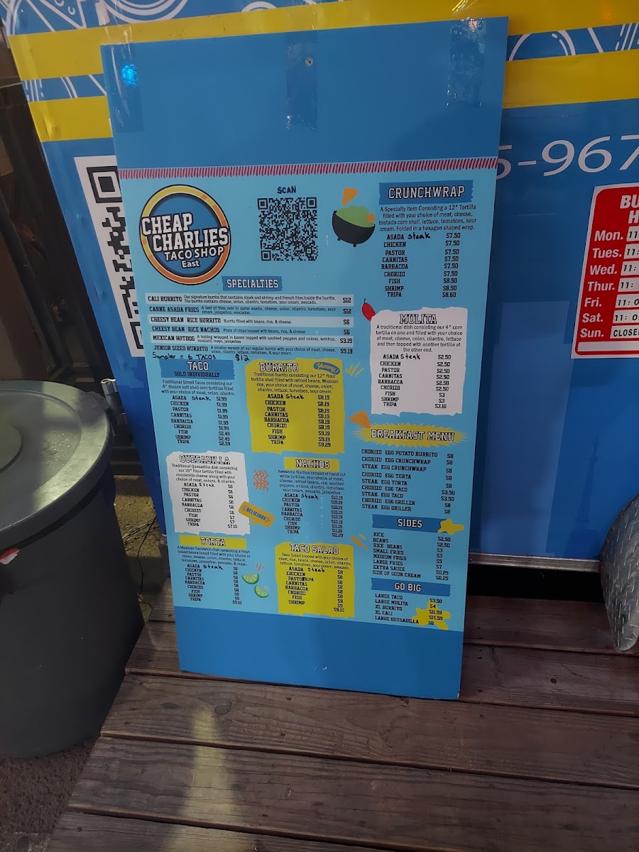 Welcome to Cheap Charlie's Taco Shop, located at 1101 Woodland St, Nashville, TN. This hidden gem has quickly become a local favorite for taco lovers. Their menu boasts an impressive array of options, including delicious Taco Salads with choices ranging from succulent Asada to fresh Veggie at just US$8.70. The Junior Burritos, available in classic flavors like Chicken and Pastor starting at US$5.69, provide a satisfying yet budget-friendly meal.